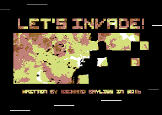 Let's Invade was currently in the testing phase. Unfortunately not everything is quite ready yet although I do feel confident about an Autumn release of this game. Parts of the game code needed to be tweaked, the Health and Safety notice needed to be updated, and also the game char set needed a quick change. So I fixed those, however, I came across another obstacle. The alien bullet firing isn't random enough, and it seems the same alien shoots the bullet. Sadly this is still the obstacle I haven't got over with this week.